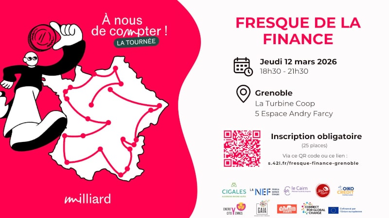 À Grenoble, le collectif de finance solidaire, Grenansol, co-organise 2 ateliers dans le cadre de la tournée « à nous de compter ». Lancée par l’opération milliard, cette tournée s’adresse à toute personne souhaitant comprendre le système financier, comment aligner son épargne avec ses valeurs… et comment, ensuite, lui donner encore plus de pouvoir !